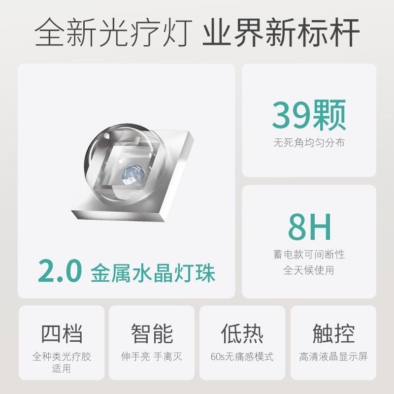 39 high‑quality lamp beads (365nm + 395nm dual wavelength) cure all types of gel: base coat, color gel, top coat, builder gel, and even hard gels.